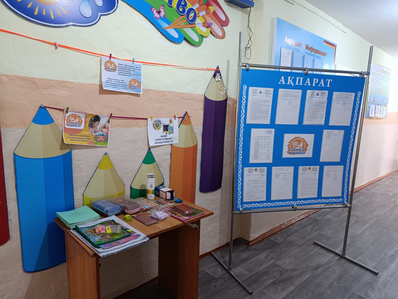 2025 жылдың 1 тамызы мен 30 қыркүйегі аралығында көмекке мұқтаж балаларды барынша қамту мақсатында "Мектепке жол"қайырымдылық акциясы өткізілді. Акция кезеңінде әлеуметтік себептер бойынша мектепке бармайтын балаларды анықтауға (бізде анықталмаған), сондай-ақ әлеуметтік қорғалмаған отбасылардан шыққан балаларға көмек көрсетуге ерекше назар аударылды. Акцияны сәтті өткізу үшін ата-аналар комитетінің мерейтойлық Ш/Қ, кәсіпкерлер арасынан демеушілер тартылды. Ауданымыздың кәсіпкерлері "Қаз Бидай Экспорт" ЖШС басшысы А.Р. Бекенов 30 000 (отыз мың) теңге сомасына кеңсе тауарлары түрінде материалдық көмек көрсетті, сондай-ақ 30 000 (отыз мың) теңге сомасына 3 "бірінші сынып оқушысына сыйлық" жиынтығын сатып алуға демеушілік көмек көрсетті.
